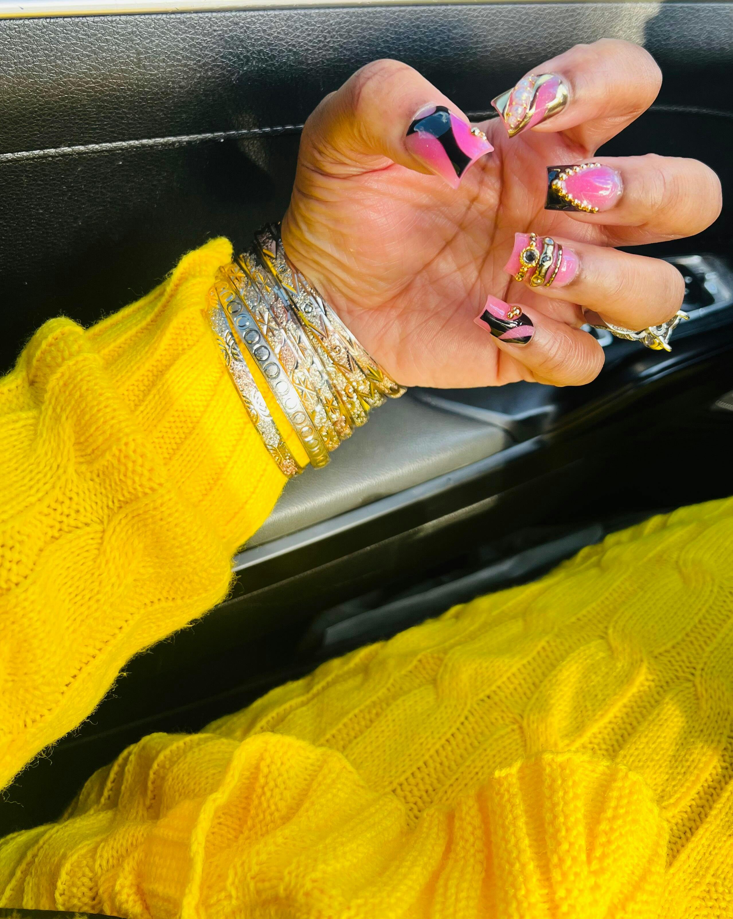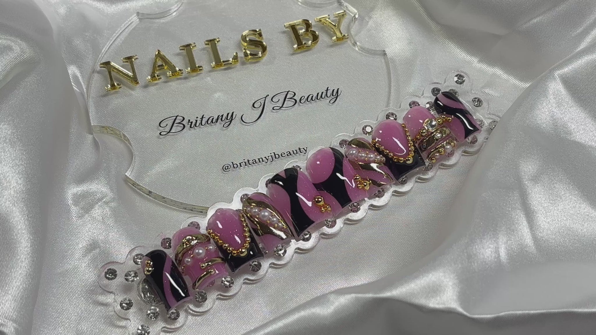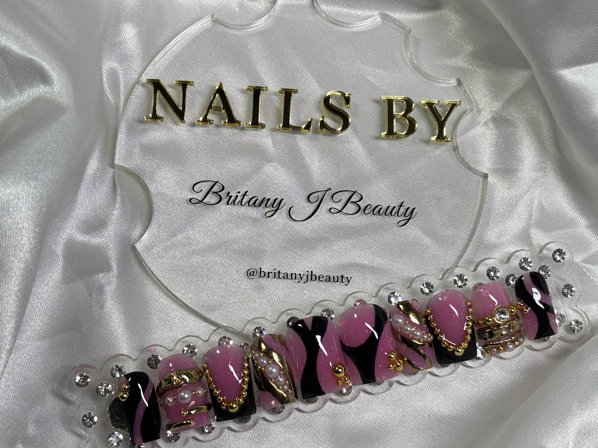 Step into every room like you own it with Boardroom Baddie. This handcrafted press-on nail set blends bold pink and black swirls with luxe gold chain accents, pearls, and high-shine details for a look that commands attention without saying a word. Perfect for work trips, power lunches, content shoots, or any time you want to bring CEO energy to your nails. Each set is custom-made for a flawless fit and long-lasting wear — because your nails should feel just as powerful as you do.