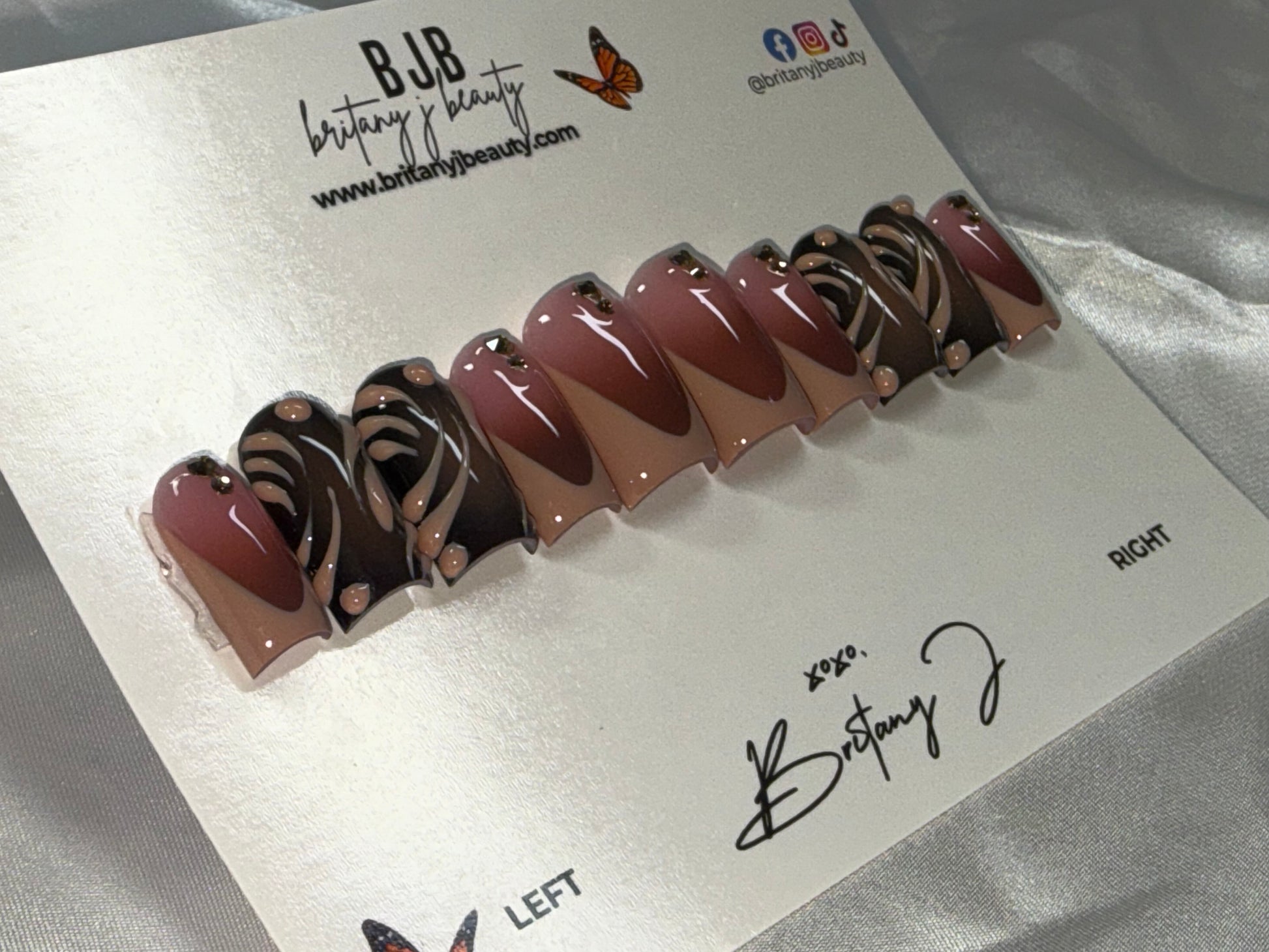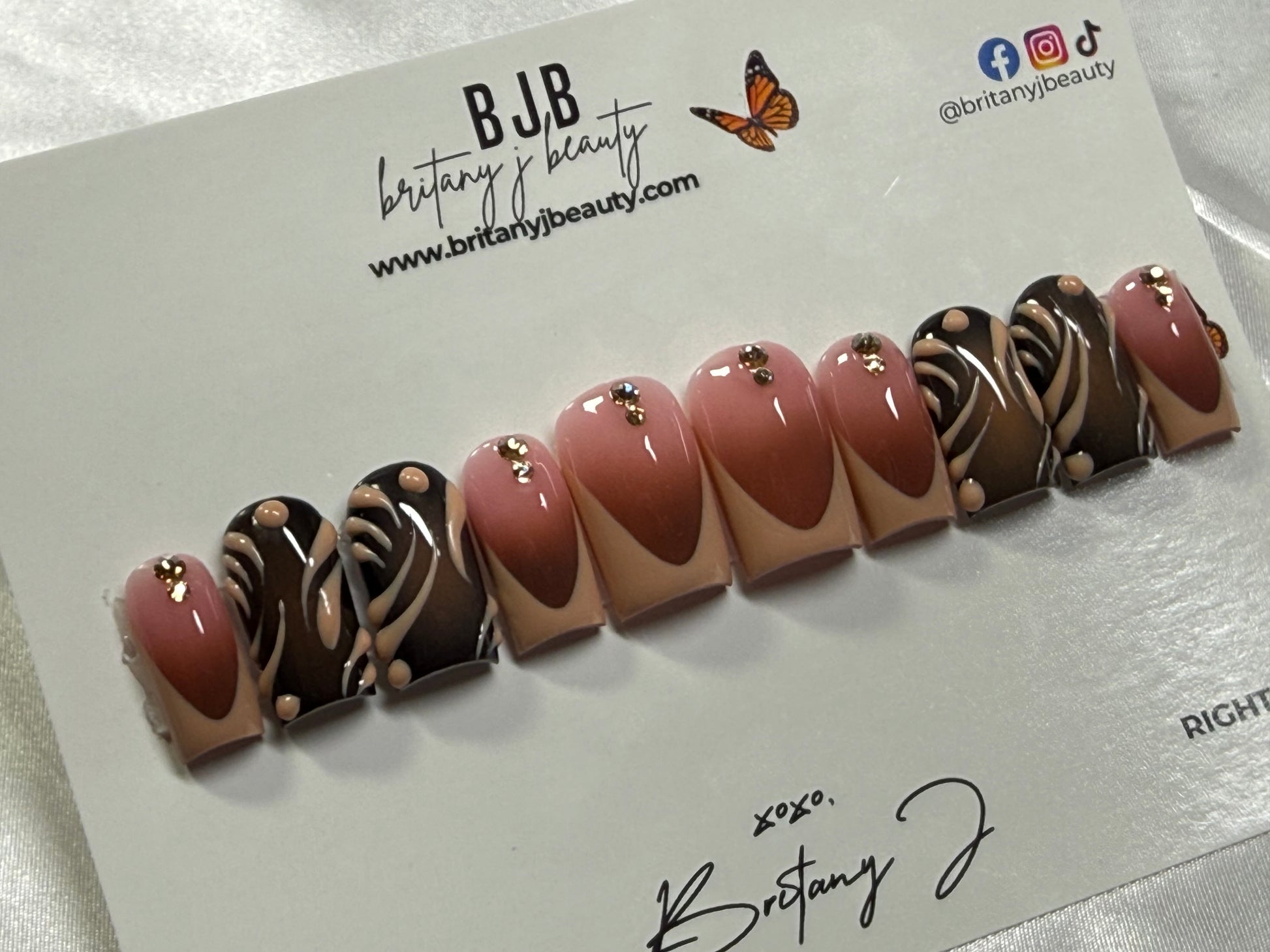 Sophisticated. Sultry. A little bit bold. This set gives soft glam energy with just enough edge to make it unforgettable. Handcrafted with detailed artistry for a salon-quality finish that lasts because your press-ons should hit like a fresh set every time.