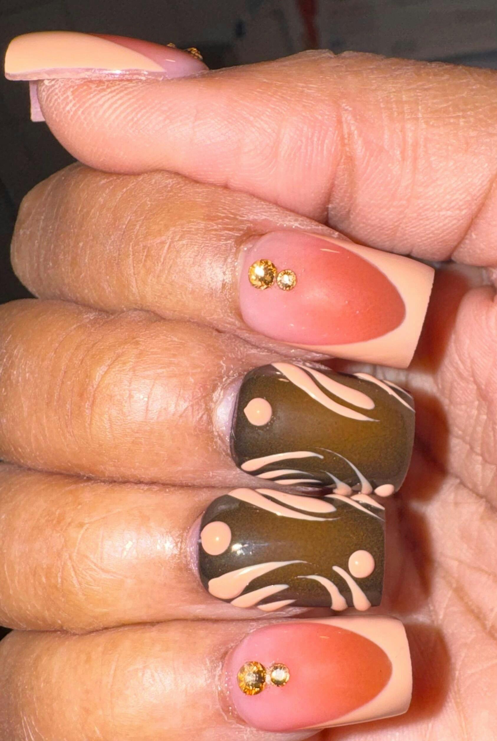 **Med & XL-3XL Stiletto, Med-3XL Skinny Almond, Long-2XL Tapered Coffin, XL-3XL Tapered Duck, Med & 3XL Natural Curve, Long-3XL Curved Stilettos and 3XL 90s Curve are available upon request. Please select the Square or Square w/Mooncut, in your desired length and list Stiletto, Skinny Almond, Tapered Coffin, Tapered Duck, Natural Curve, Curve Stilettos or 90s Curve in the 'Special Notes' box. IF YOU WOULD LIKE A DIFFERENT COLOR PLEASE LIST THE COLOR(S) IN THE 'SPECIAL NOTES' BOX ABOVE. Nail charms may vary upon availability.