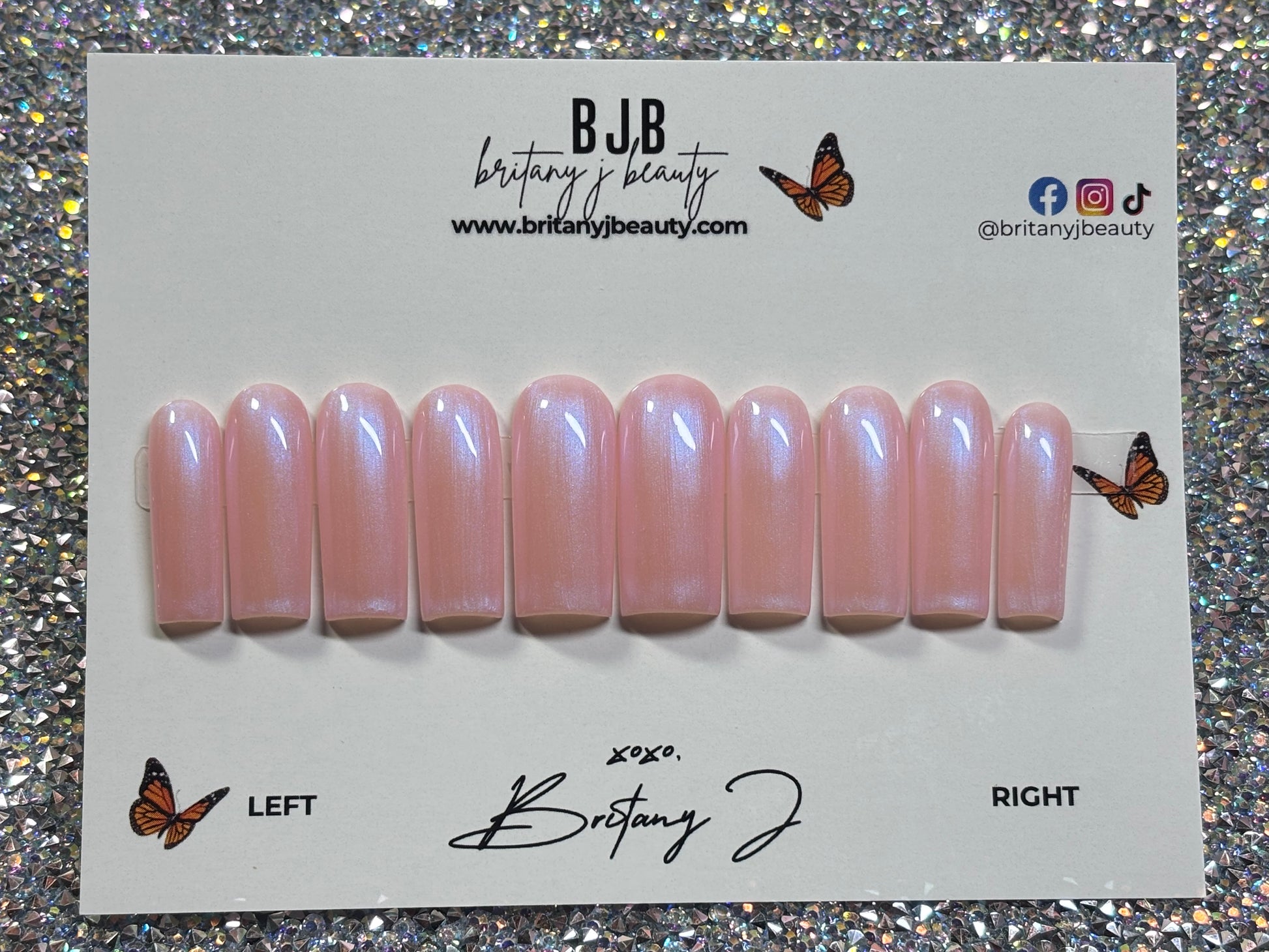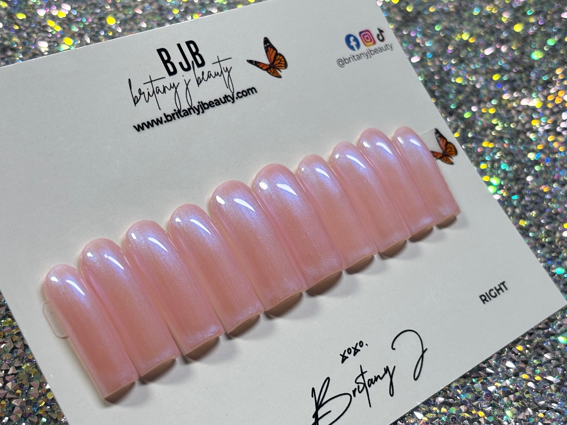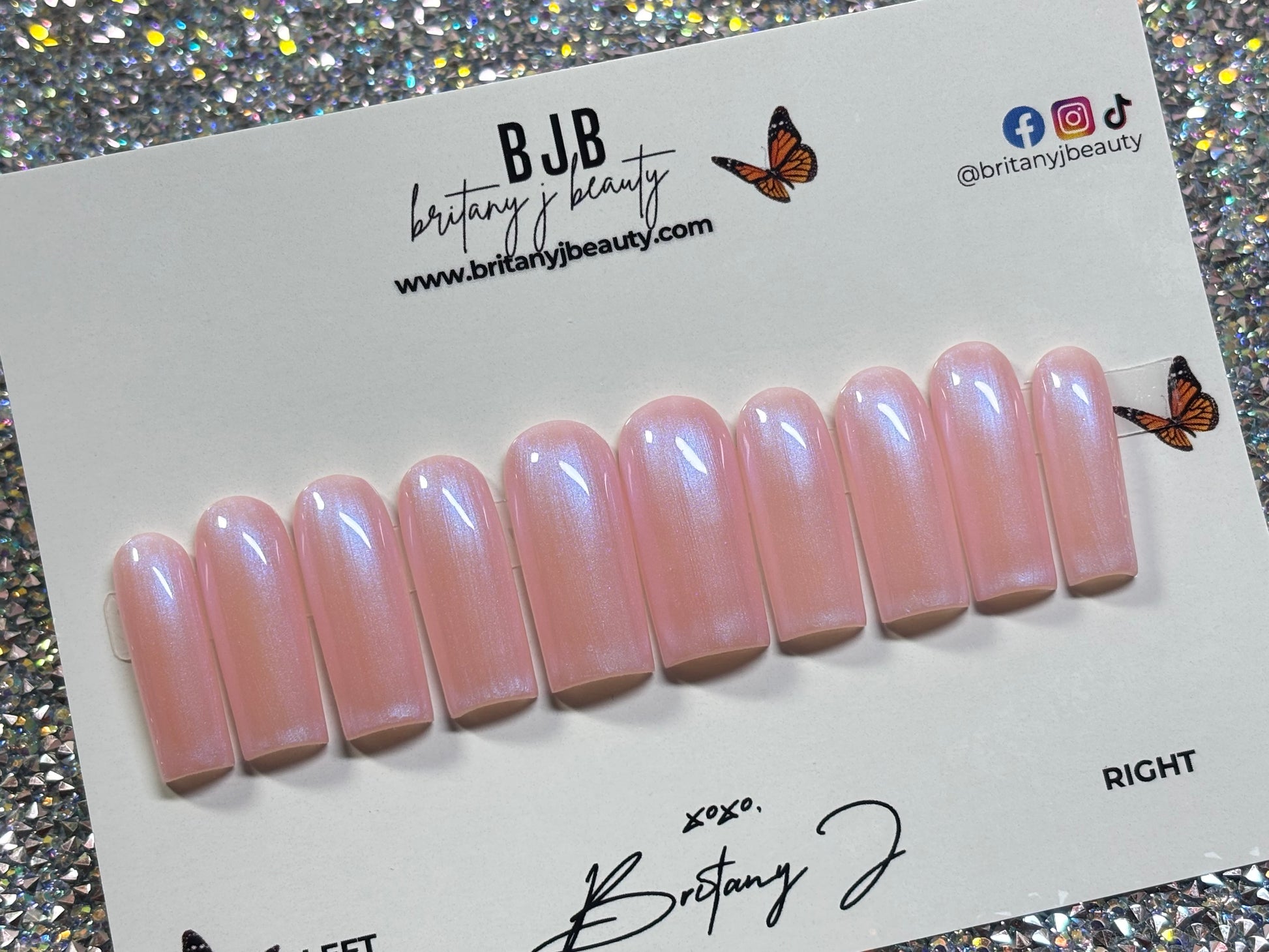 Elevate your everyday glam with our Cotton Candy set — a dreamy, sheer pink set that glows with a soft pearlescent shimmer. Whether you’re going for bridal soft, clean girl aesthetic, or just love a 90's feel, this set delivers a nostalgic twist.