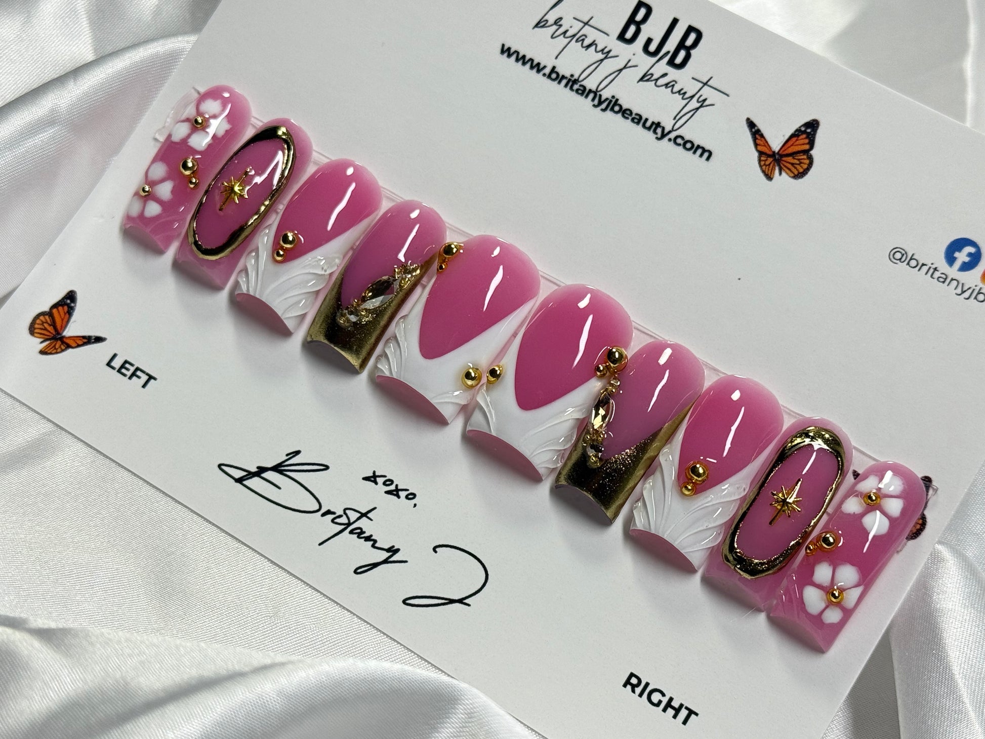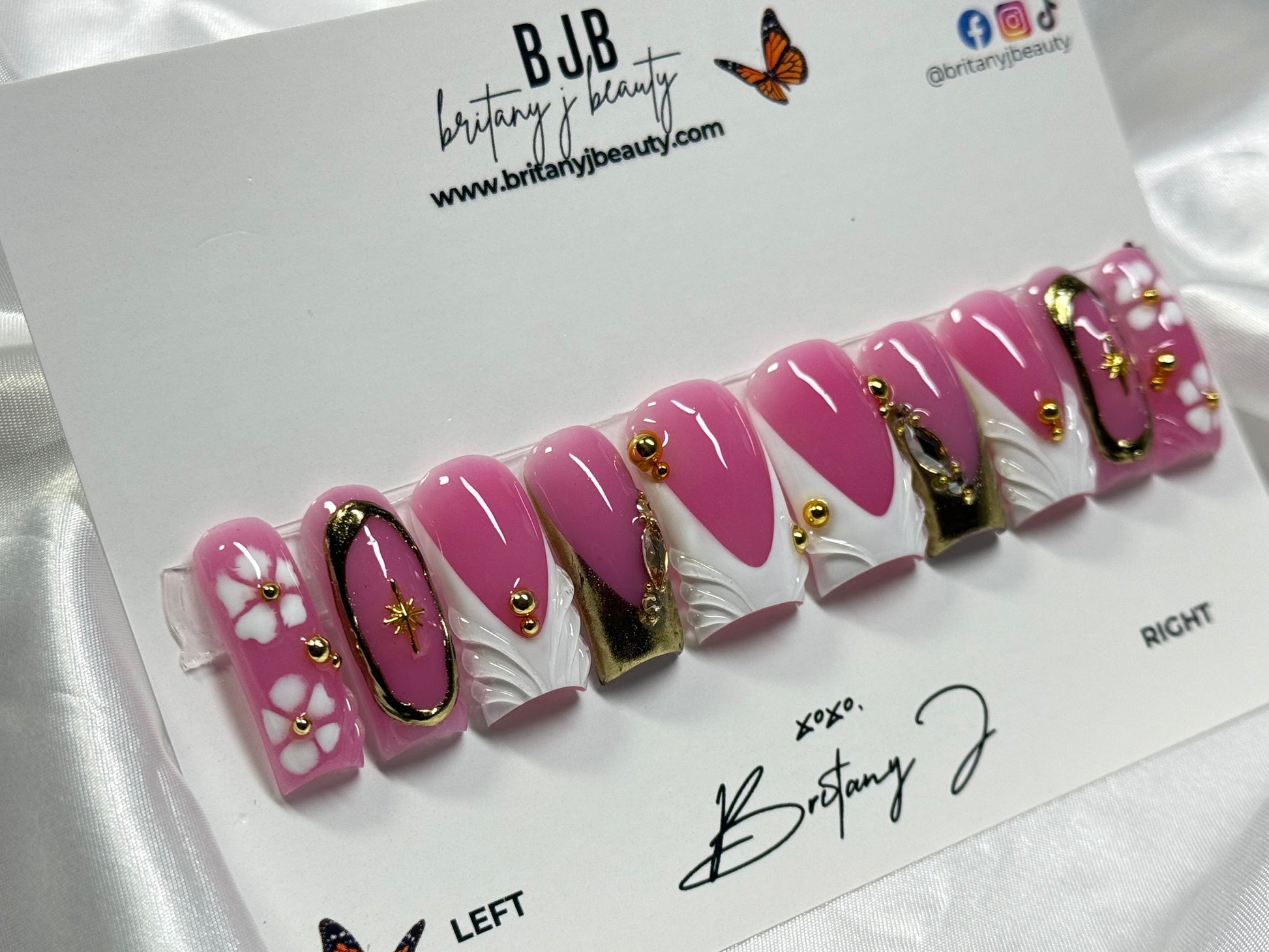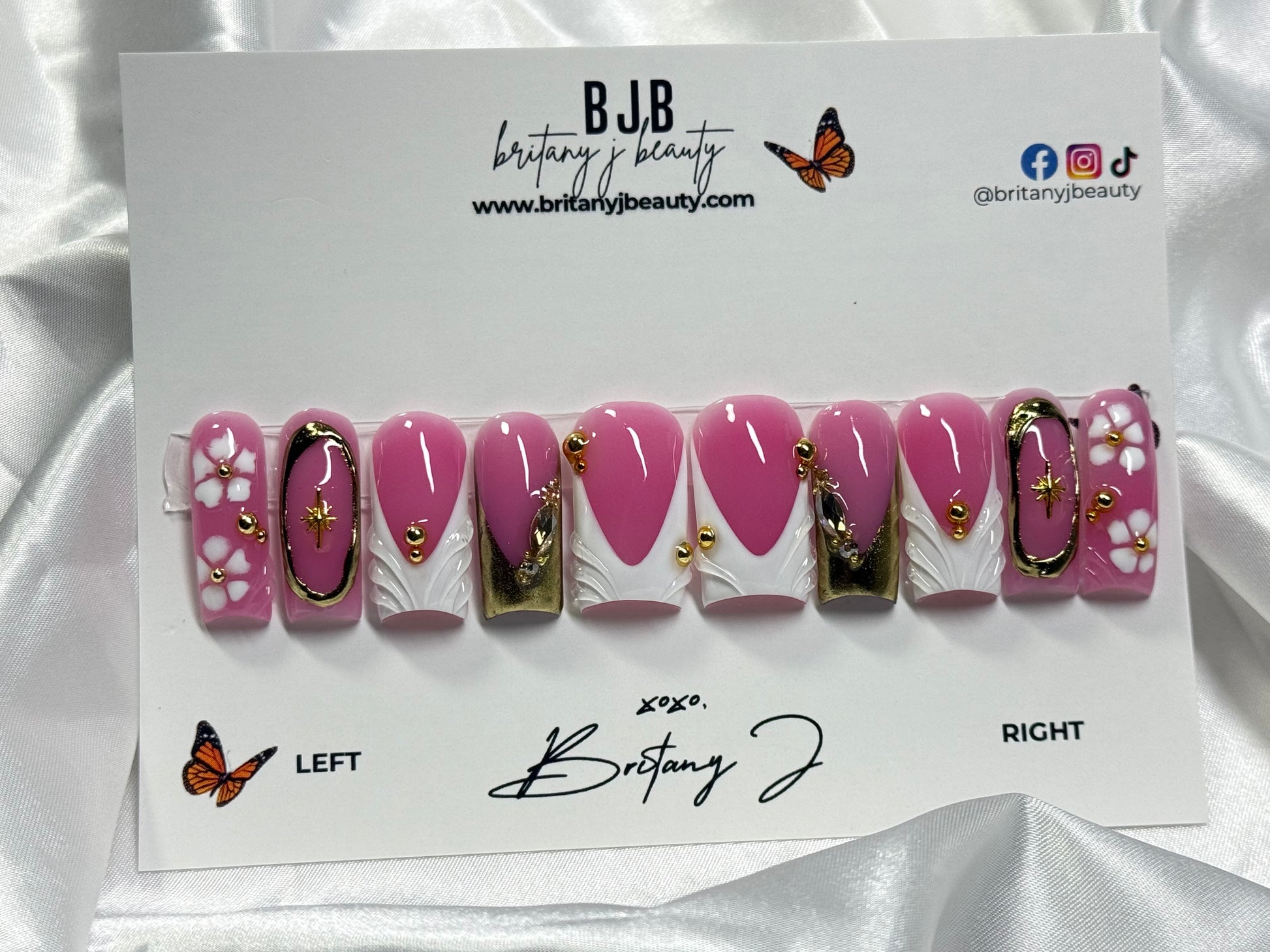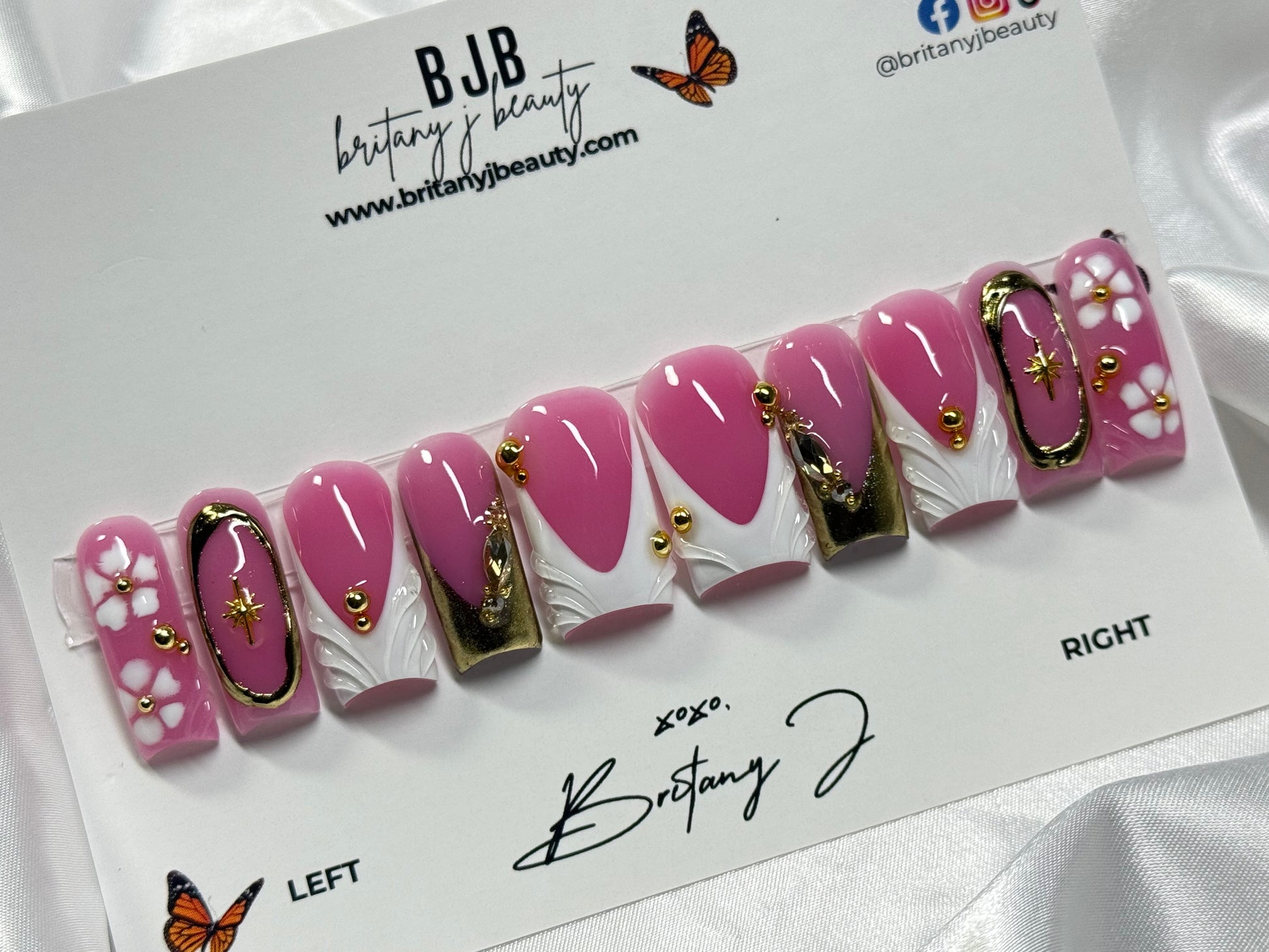 **Med & XL-3XL Stiletto, Med-3XL Skinny Almond, Long-2XL Tapered Coffin, XL-3XL Tapered Duck, Med & 3XL Natural Curve, Long-3XL Curved Stilettos and 3XL 90s Curve are available upon request. Please select the Square or Square w/Mooncut, in your desired length and list Stiletto, Skinny Almond, Tapered Coffin, Tapered Duck, Natural Curve, Curve Stilettos or 90s Curve in the 'Special Notes' box. IF YOU WOULD LIKE A DIFFERENT COLOR PLEASE LIST THE COLOR(S) IN THE 'SPECIAL NOTES' BOX ABOVE. Nail charms may vary upon availability.